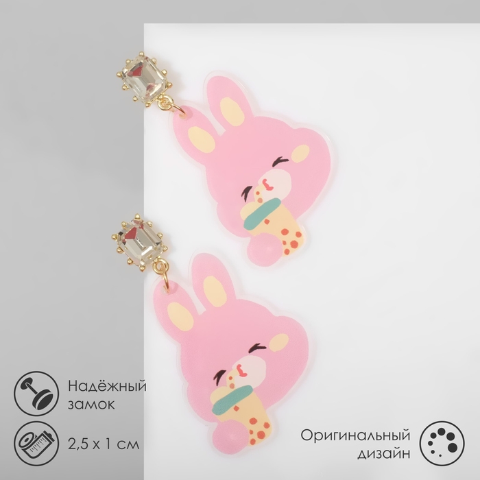 Серьги пластик «Зайки» с цветочком, цветные в золоте