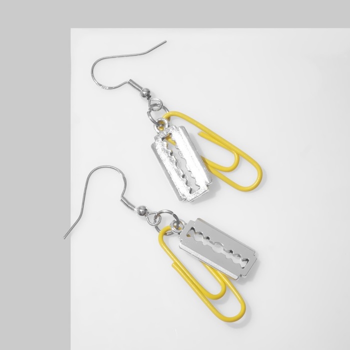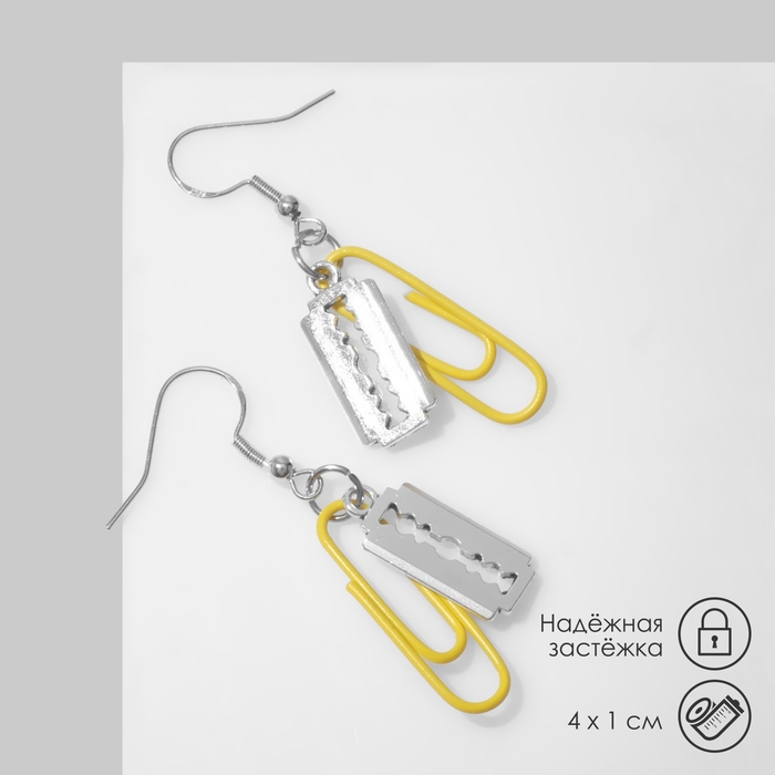 Серьги металл «Лезвие» со скрепкой, цвет жёлтый в серебре