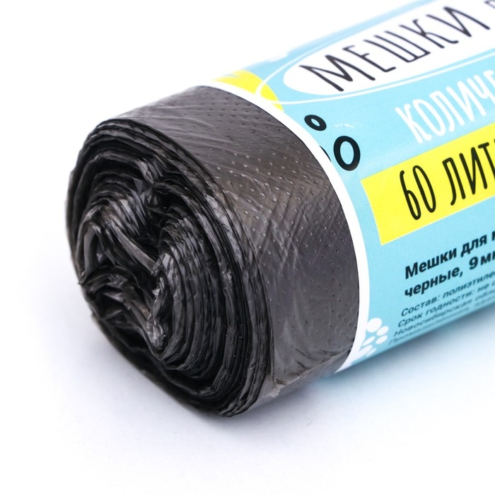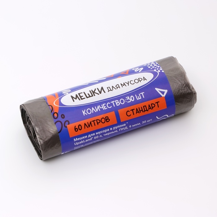 Мешки для мусора в рулоне «UPAK LAND» 60 л, чёрные, ПНД, 9 мкм, 30 шт, 50 х 80 см