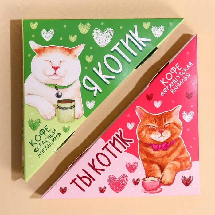 Набор кофе «Котики», вкус: красный апельсин 50 г., французская ваниль 50 г.
