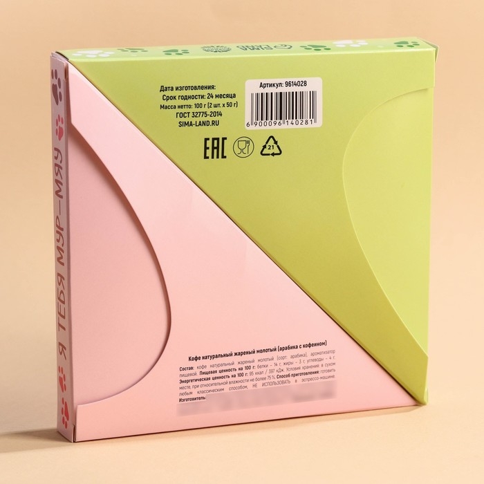 Состав: кофе натуральный жареный молотый (сорт: арабика), ароматизатор пищевой.