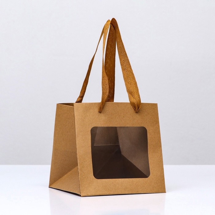 Пакет подарочный, крафт, с окном, 15 х 15 х 15 см