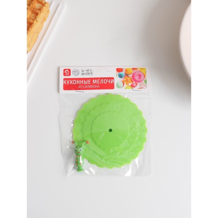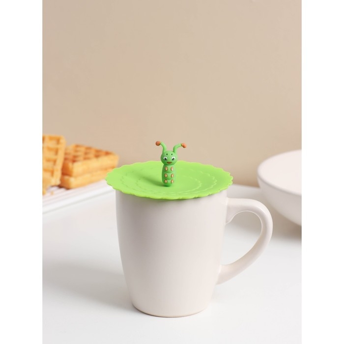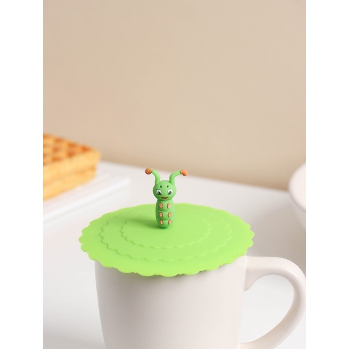 Крышка - непроливайка силиконовая Доляна «Гусеничка», d=10 см, цвет зелёный