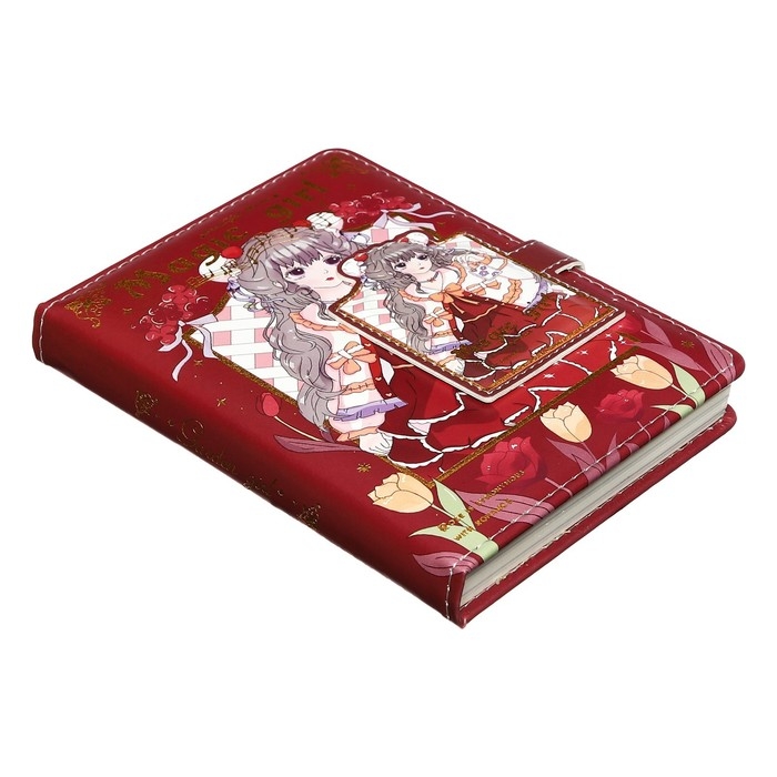 Записная книжка подарочная, А6, 100 листов, цветной блок, с фигурным хлястиком на магните, "Аниме", МИКС
