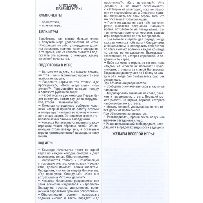 Настольная игра для взрослых для компании "Опоздуны", 55 карточек, 18+