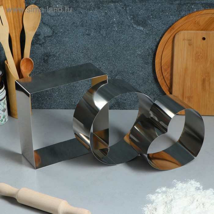 Набор форм для выпечки и выкладки «Круг, квадрат, сердце», 20 х 20 х 8,5 см, 3 шт