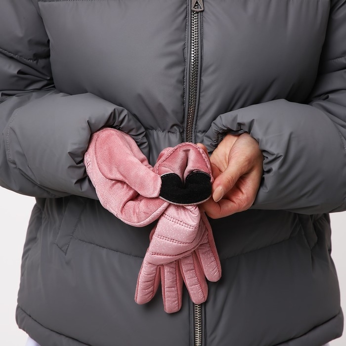 Перчатки женские, безразмерные, с утеплителем, цвет розовый