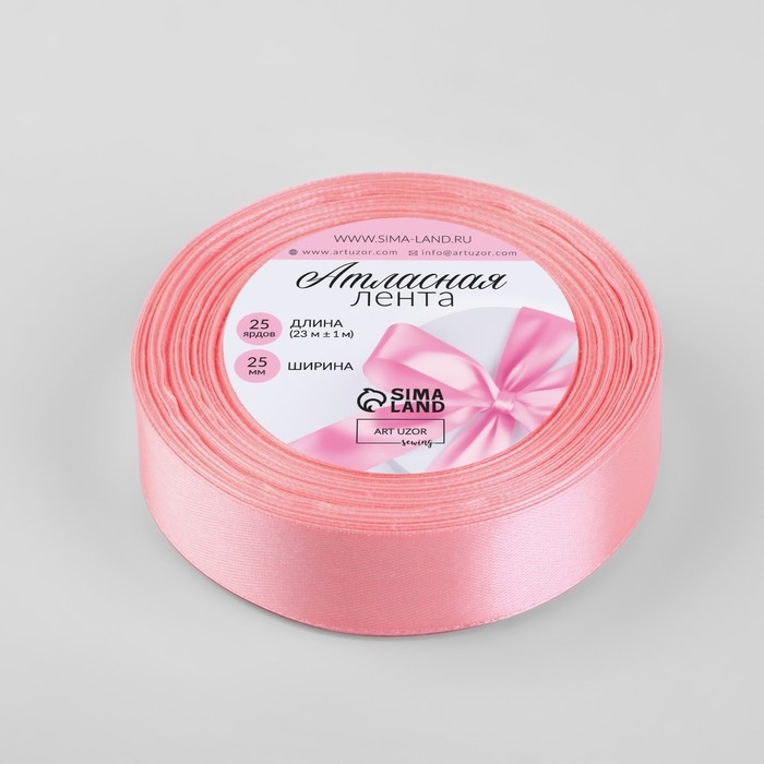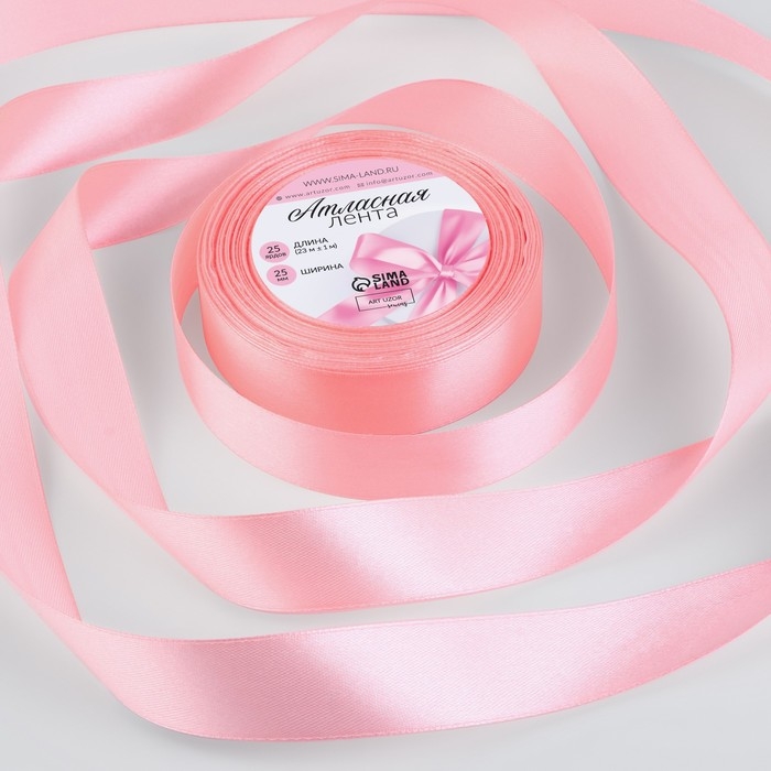 Лента атласная, 25 мм × 23 ± 1 м, цвет розовый персик №66