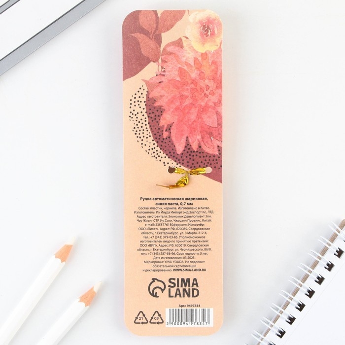 Ручка шариковая синяя паста «Цветок»,пластик, на подложке 8 марта