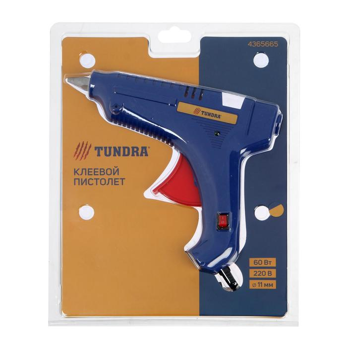 Клеевой пистолет ТУНДРА, 60 Вт, 220 В, шнур 1.2 м, выключатель, индикатор, антикапля, 11 мм