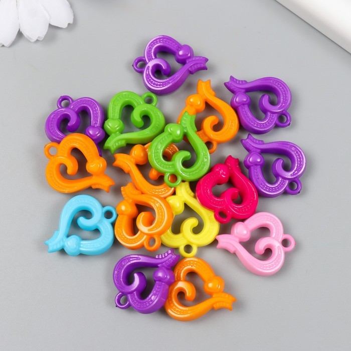 Декор для творчества пластик "Сердца изогнутые" цветные набор 25 гр 0,7х2,1х2,6 см