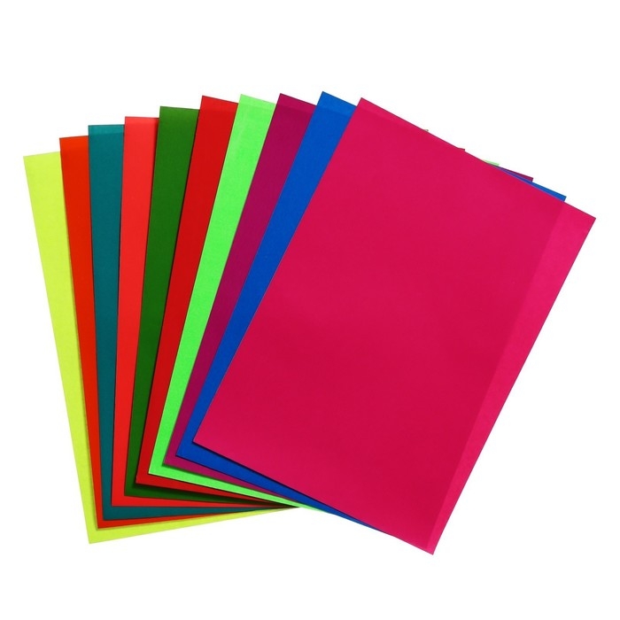 Бумага цветная формат, А4, 10 листов, 10 цветов, самоклеящаяся неон, плотность 70г/м3, 11мкр