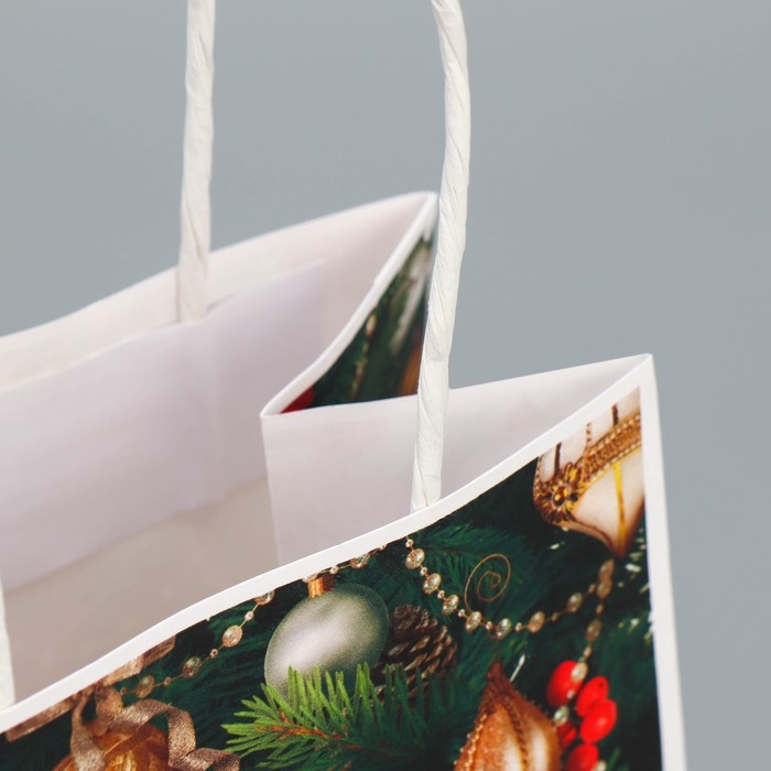 Пакет подарочный новогодний крафтовый «Игрушки», 12 х 21 х 9 см, Новый год