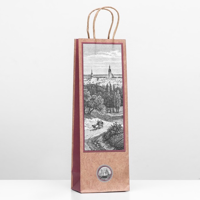 Пакет подарочный под бутылку «Ретро бордо» 12 х 36 х 8,5 см