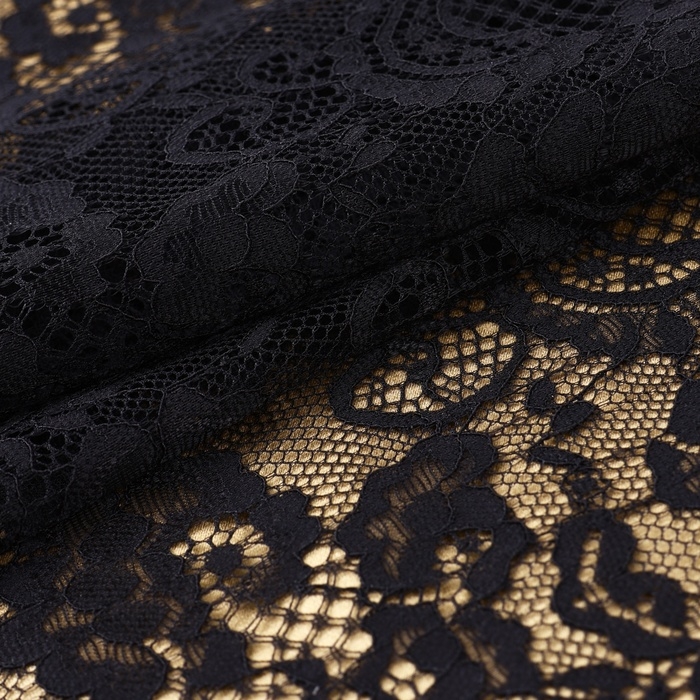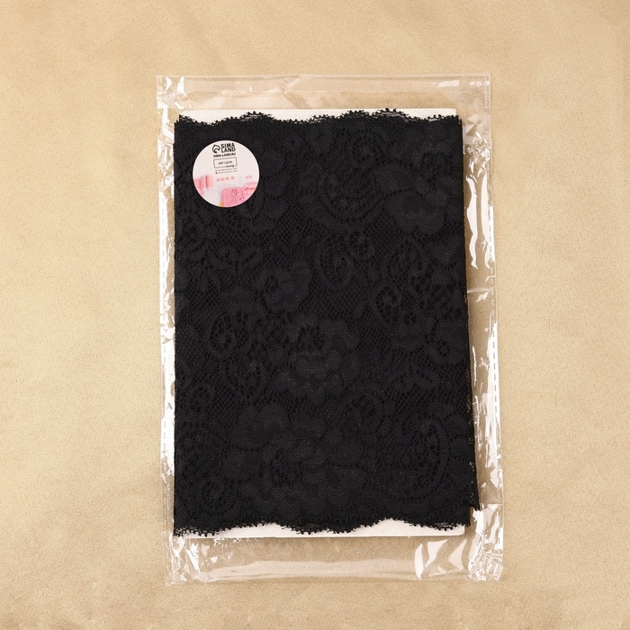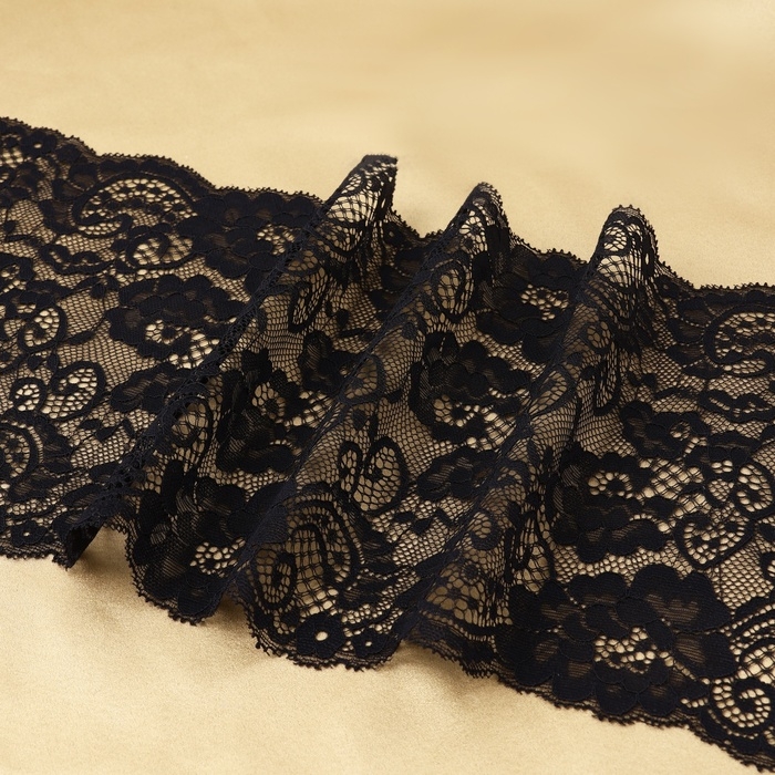Кружевная эластичная ткань, 190 мм × 2,7 ± 0,5 м, цвет чёрный