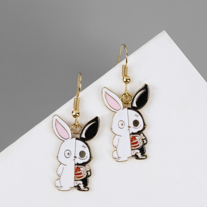 Серьги «Зайчики» скелеты, рентген, цветные в золоте