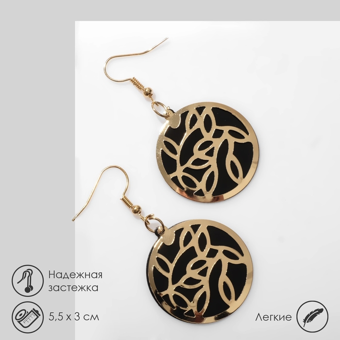 Серьги висячие «Листва» двойные, цвет золотисто-чёрный, 5,5 см