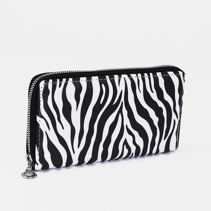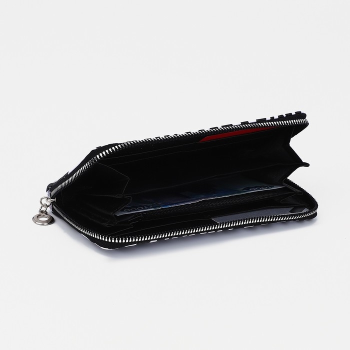 Кошелёк на молнии, отдел для карт, для монет, цвет белый/чёрный