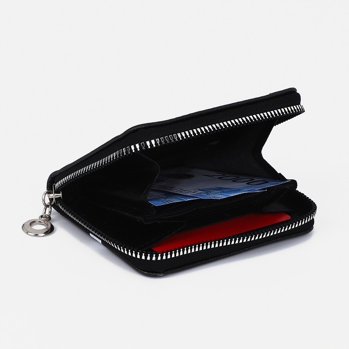 Кошелёк на молнии, отдел для карт, для монет, цвет чёрный