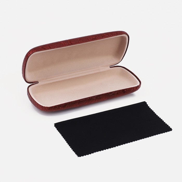 Футляр для очков — это необходимый аксессуар для любого современного человека, так как он поможет сохранить ваши очки в идеальном состоянии. Иногда возникают неудобства с ношением солнечных очков и очков для зрения одновременно, в этом случае нам пригодится специальный футляр для хранения очков. Футляр имеет жёсткий корпус, который защитит стёкла от пыли и предотвратит появление царапин и повреждений. Этот чехол – унисекс, он идеально подходит как для мужского, так и для женского стиля. Наш чехол для очков выполнен из качественной экокожи, которая обеспечивает надёжную защиту и долгий срок службы. Пенал имеет хлопушку, благодаря которой его можно легко и удобно закрыть. Этот чехол имеет горизонтальную форму, что позволяет легко и удобно хранить в нем очки. Также он обладает отличным солнцезащитным эффектом, благодаря специальному материалу, который не пропускает ультрафиолетовые лучи. Очечник из искусственной кожи универсален благодаря своей однотонной фактуре и стильному дизайну. Его бордовый оттенок подойдёт каждому. Контейнер имеет удобную форму, которая позволяет легко и компактно хранить очки в сумке или кармане, не занимая много места. Жёсткий футляр — это прекрасный подарок для мужчин и женщин на любой праздник. За счёт своего модного внешнего вида футляр понравится парням или девушкам-подросткам.