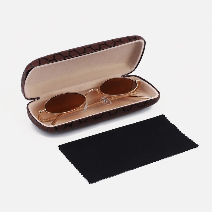 Футляр для очков — это необходимый аксессуар для любого современного человека, так как он поможет сохранить ваши очки в идеальном состоянии. Иногда возникают неудобства с ношением солнечных очков и очков для зрения одновременно, в этом случае нам пригодится специальный футляр для хранения очков. Футляр имеет жёсткий корпус, который защитит стёкла от пыли и предотвратит появление царапин и повреждений. Этот чехол – унисекс, он идеально подходит как для мужского, так и для женского стиля. Наш чехол для очков выполнен из качественной экокожи, которая обеспечивает надёжную защиту и долгий срок службы. Пенал имеет хлопушку, благодаря которой его можно легко и удобно закрыть. Этот чехол имеет горизонтальную форму, что позволяет легко и удобно хранить в нем очки. Также он обладает отличным солнцезащитным эффектом, благодаря специальному материалу, который не пропускает ультрафиолетовые лучи. Очечник из искусственной кожи универсален благодаря своей однотонной фактуре и стильному дизайну. Его коричневый оттенок подойдёт каждому. Контейнер имеет удобную форму, которая позволяет легко и компактно хранить очки в сумке или кармане, не занимая много места. Жёсткий футляр — это прекрасный подарок для мужчин и женщин на любой праздник. За счёт своего модного внешнего вида футляр понравится парням или девушкам-подросткам.