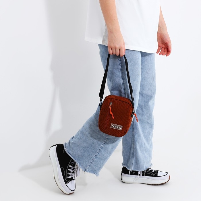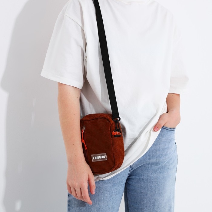 Сумка молодёжная на молнии, наружный карман, цвет коричневый