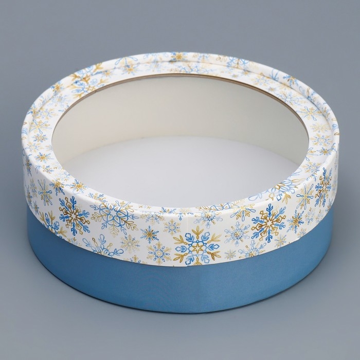 Коробка для макарун тубус с окном «Снежинки», 16 х 16 х 5 см, Новый год