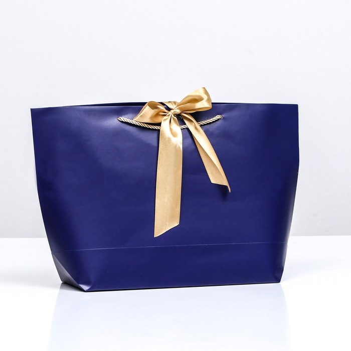 Пакет подарочный с лентой 30 х 27,5 х 12 см "Синий"