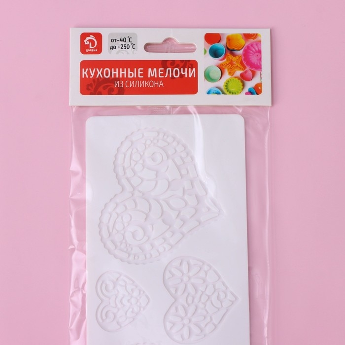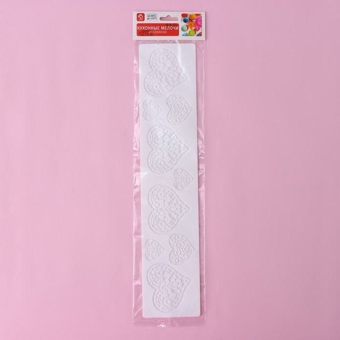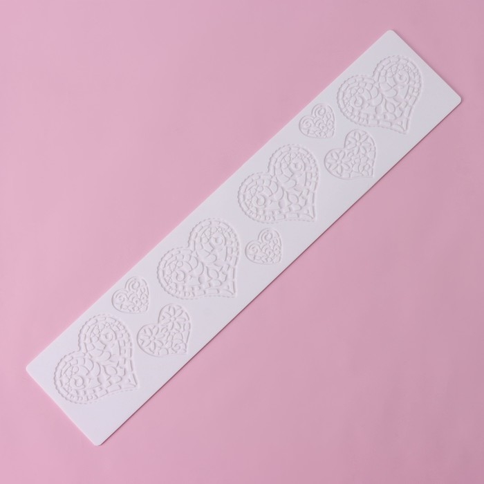 Коврик для айсинга Доляна «Сердца», силикон, 37,5×8×0,1 см, цвет белый