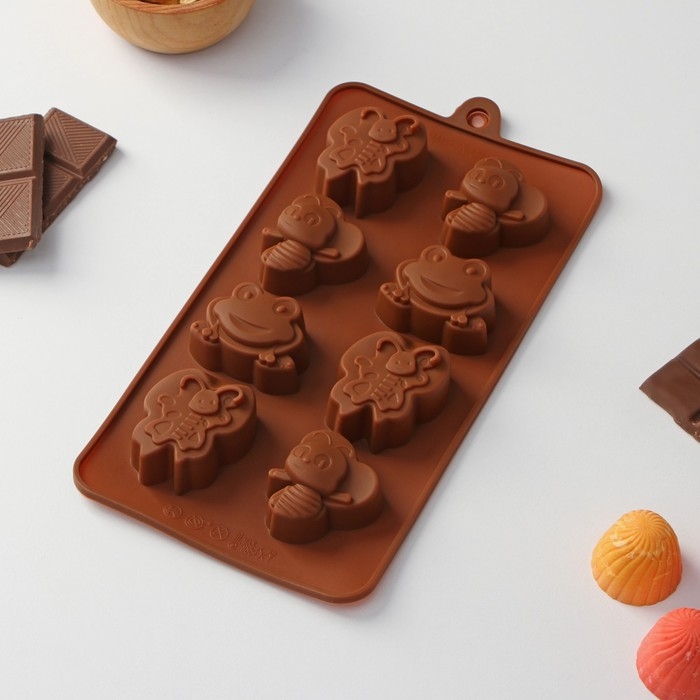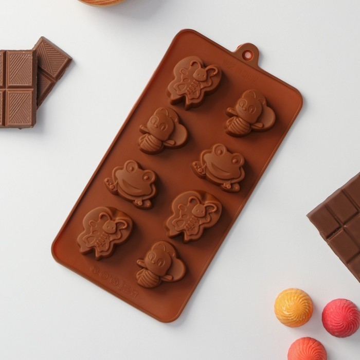 Форма для шоколада Доляна «Насекомые», силикон, 22×11,5×2 см, 8 ячеек, цвет коричневый