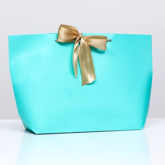 Пакет подарочный с лентой 30 х 27,5 х 12 см "Бирюзовый"