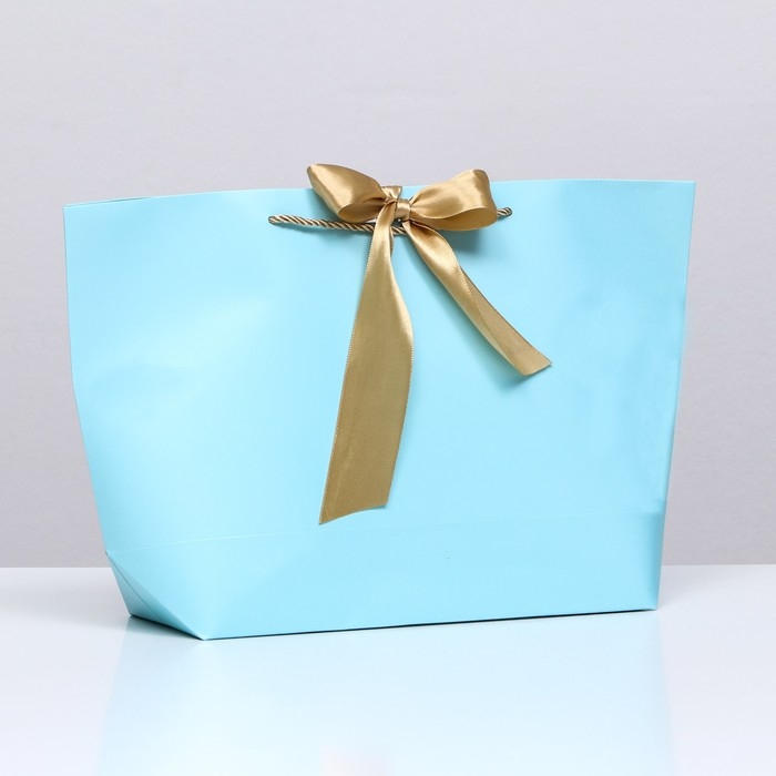 Пакет подарочный с лентой 30 х 27,5 х 12 см "Голубой"
