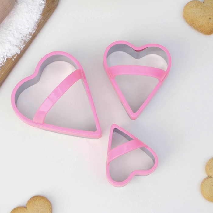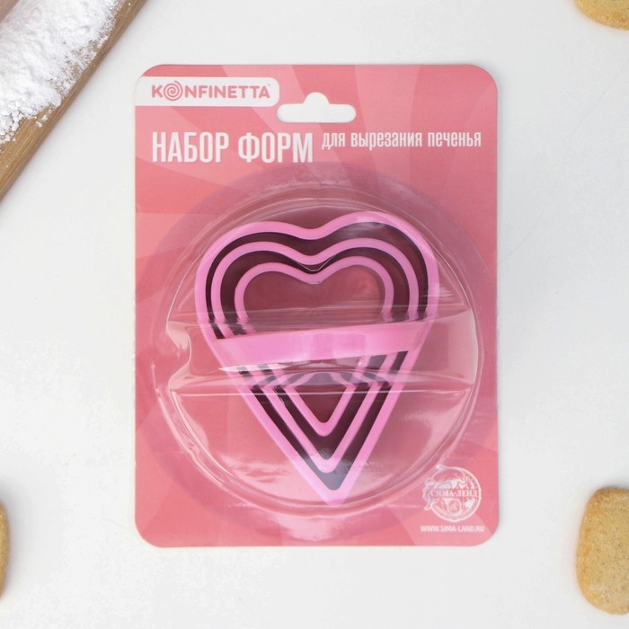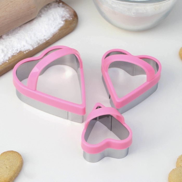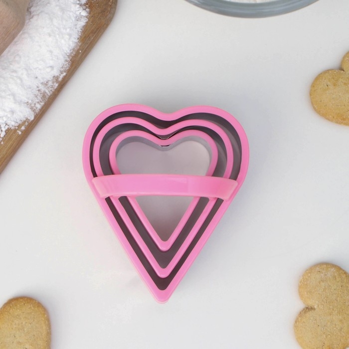Набор форм для печенья KONFINETTA «Сердце», 3 шт, цвет розовый