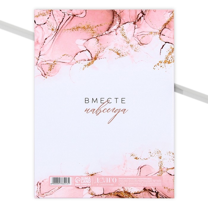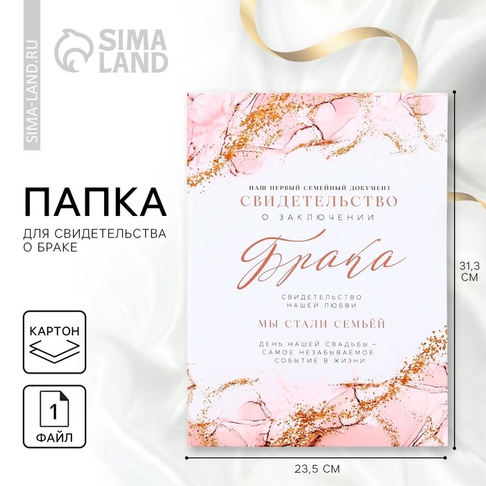 Папка для свидетельства о заключении брака «Семейный документ», мрамор, А5 станет лучшим обрамлением для вашего первого совместного документа. Красивая свадебная папка подчеркнёт всю торжественность бракосочетания, она будет напоминать вам о светлом дне свадьбы. В такой папке ваш семейный документ не помнётся, не испачкается и будет сохранять свою красоту всю жизнь. Оригинальный дизайн папки создаст отличное настроение новобрачным и станет хорошим презентом на свадьбу или её годовщину.