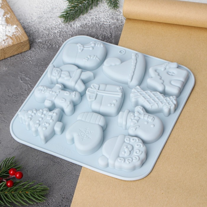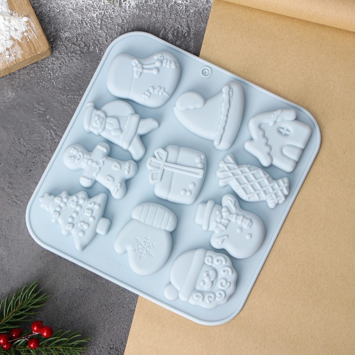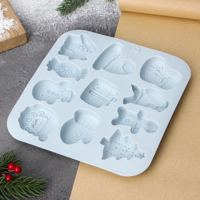 Форма для выпечки новогодняя Доляна «Новогоднее чудо», 18,8×18,3×1,5 см, 11 ячеек, цвет серый