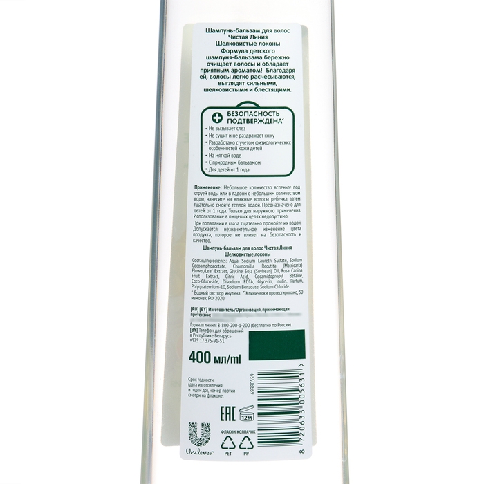 Шампунь-бальзам детский Чистая линия для легкого расчесывания, 400 мл