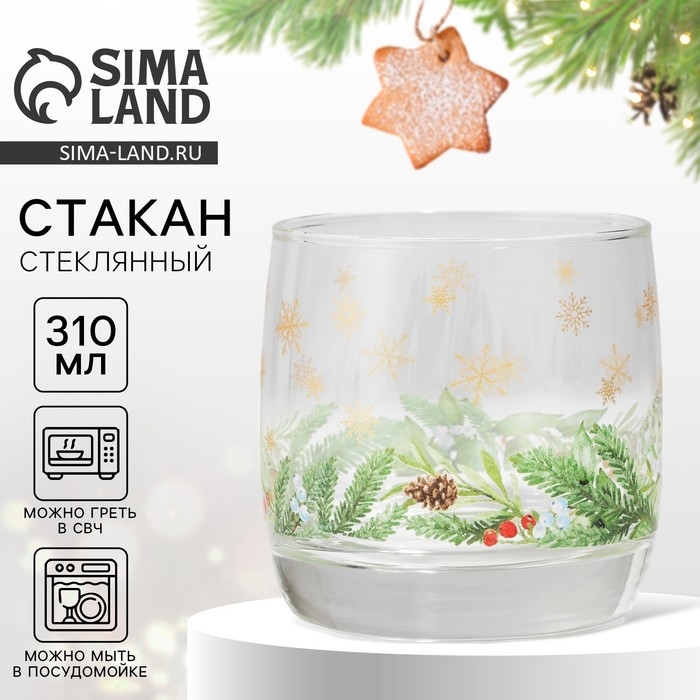 Новый год. Стакан стеклянный «Зимний букет», 310 мл