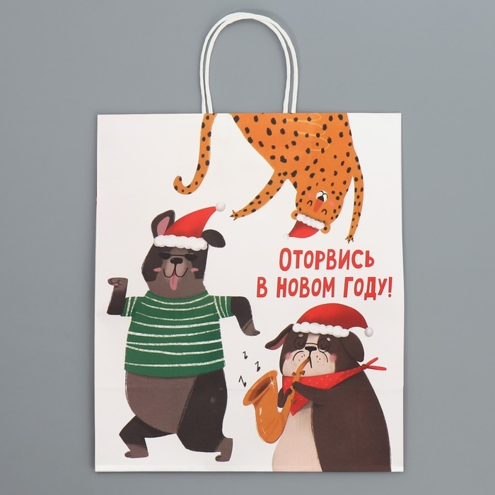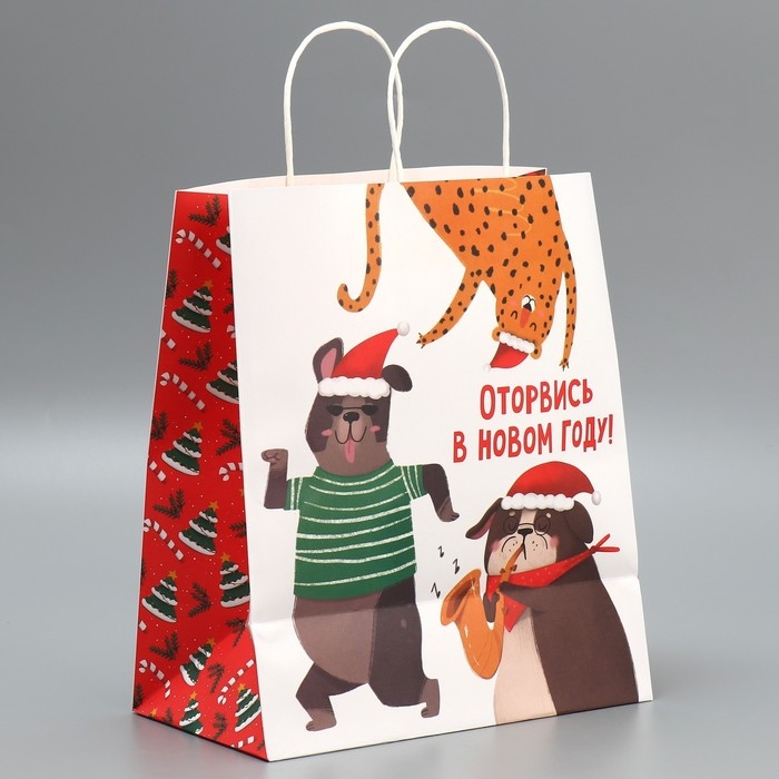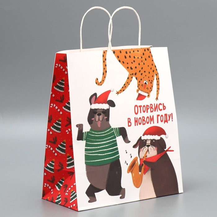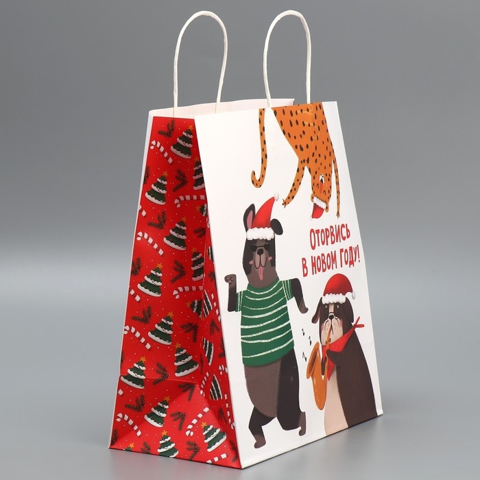 Пакет подарочный новогодний крафтовый «Оторвемся», 28 х 32 х 15 см, Новый год