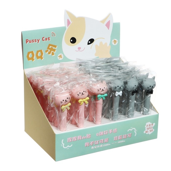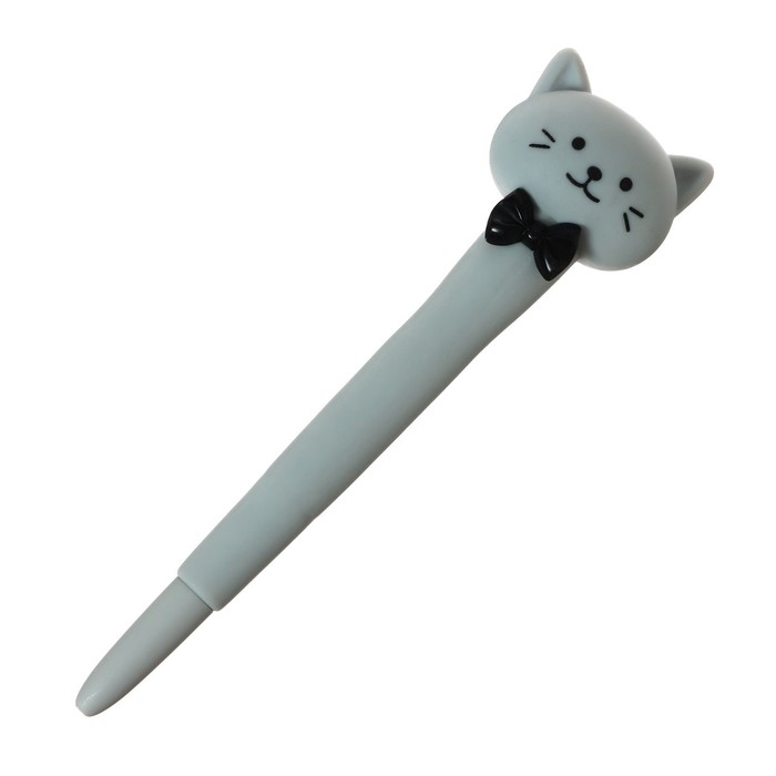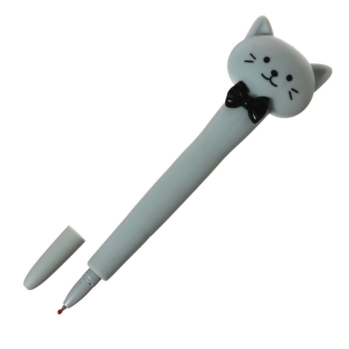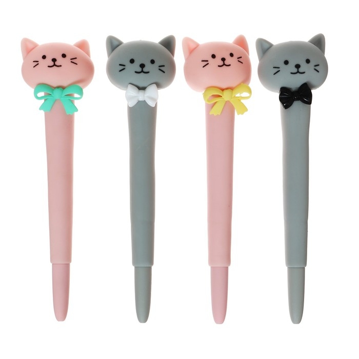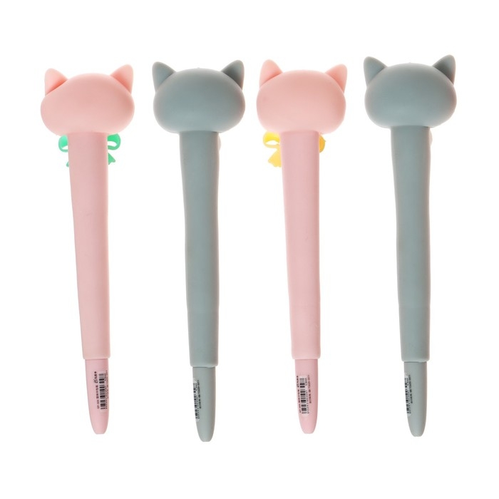 Ручка гелевая-прикол, стержень синий, мягкий корпус, Котик с бантиком МИКС
