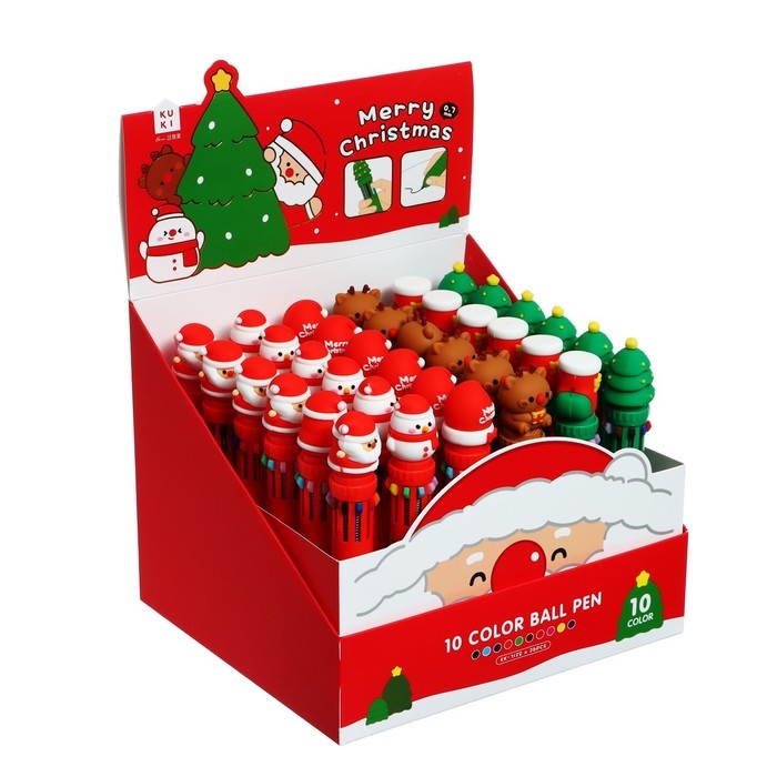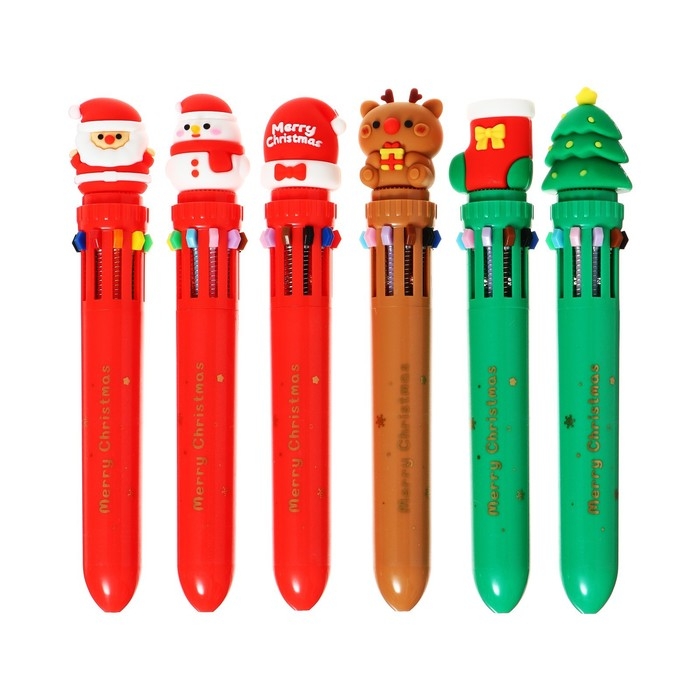 Новый год. Ручка шариковая автоматическая 10-ти цветная, стержень 0,7 мм, МИКС