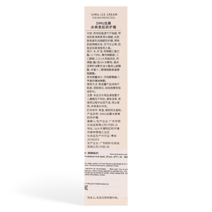 Солнцезащитный крем, 20 мл, SPF+ 50