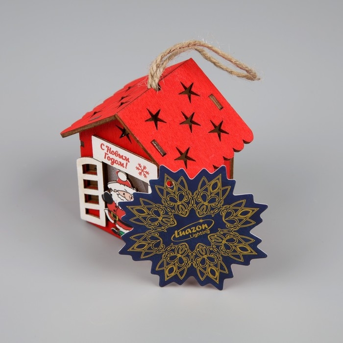 Ёлочная игрушка «Дом с Дедом Морозом», от батареек, свечение тёплое белое