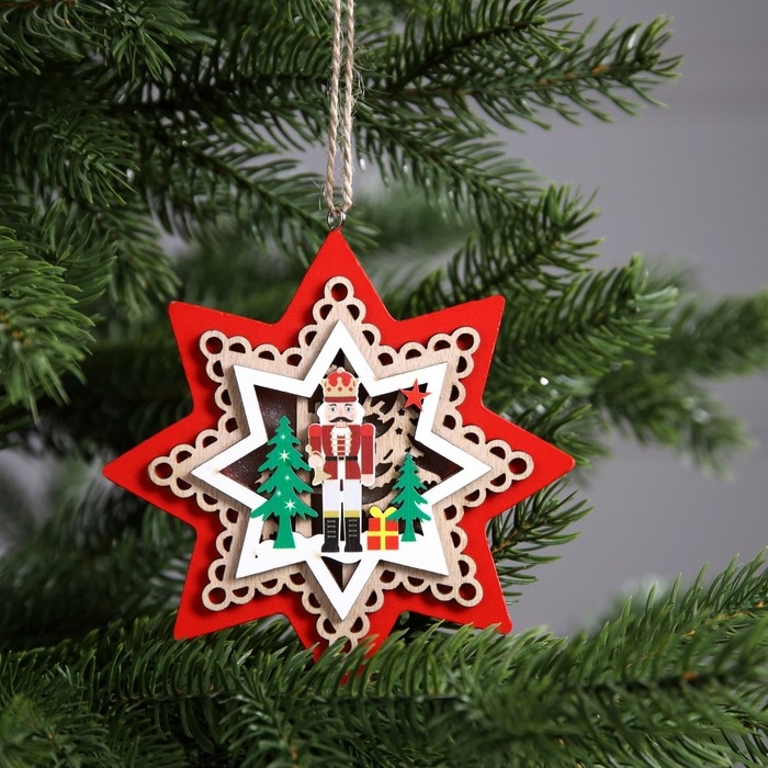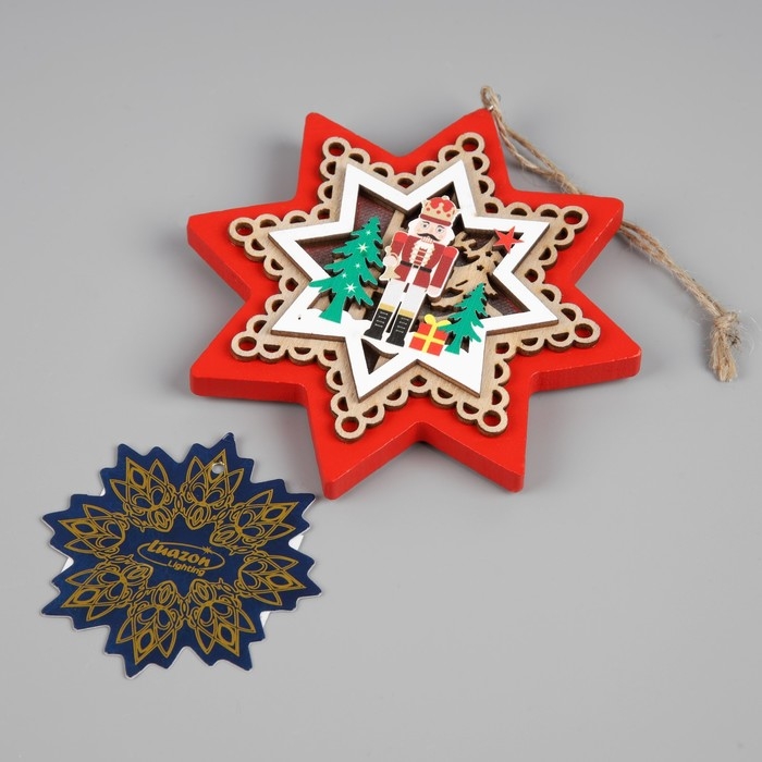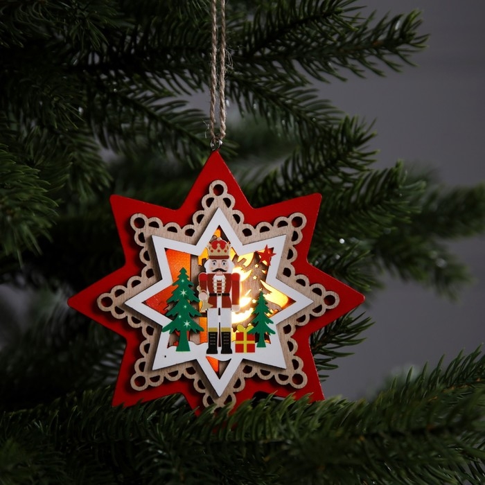 Ёлочная игрушка «Звезда с щелкунчиком», от батареек, свечение тёплое белое
