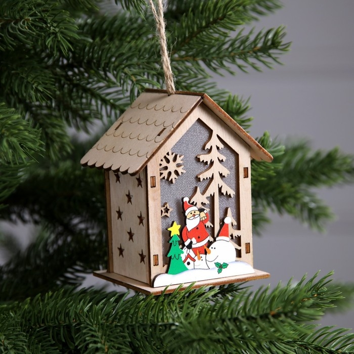 Ёлочная игрушка «Дед Мороз со снеговиками», от батареек, свечение тёплое белое