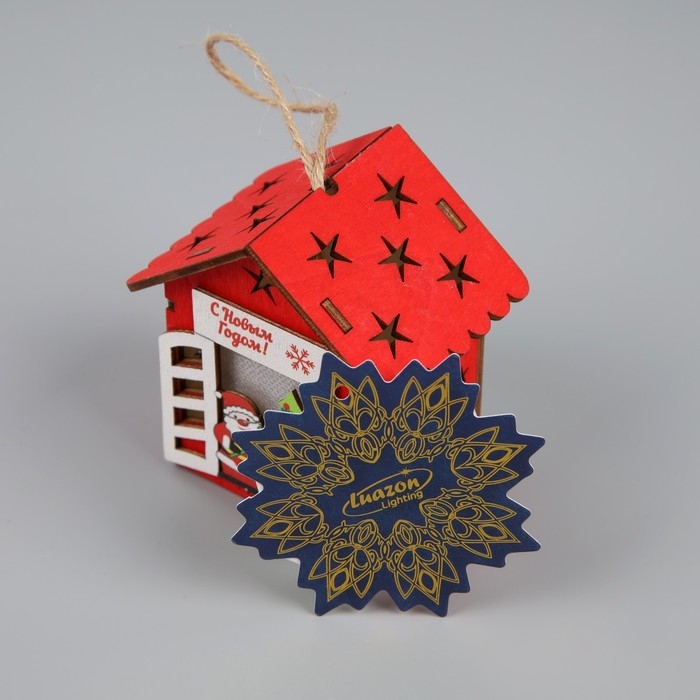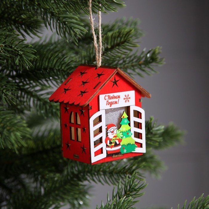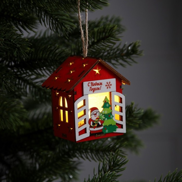 Ёлочная игрушка «Дед Мороз у ёлки», от батареек, свечение тёплое белое