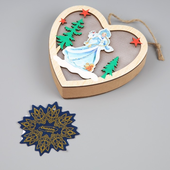 Ёлочная игрушка «Сердце со Снегурочкой», от батареек, свечение тёплое белое