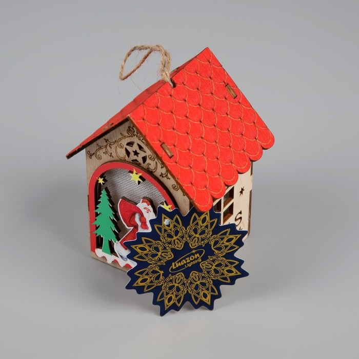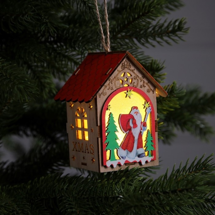 Ёлочная игрушка «Домик с Дедом Морозом», от батареек, свечение тёплое белое