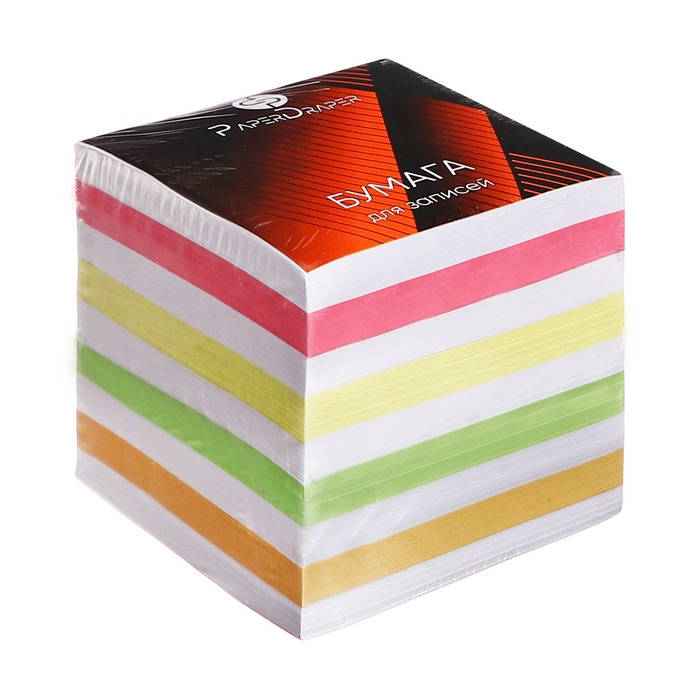 Блок бумаги для записей на склейке, 9 х 9 х 9, 3 цвета: пастель 80г/м2, белая 65г/м2, белизна 92%