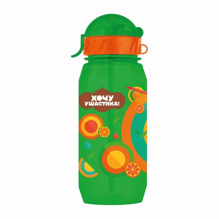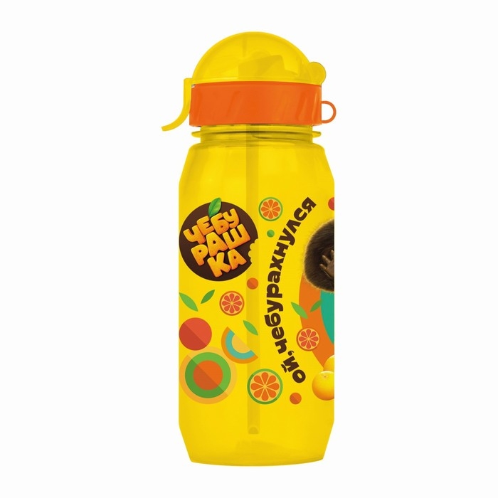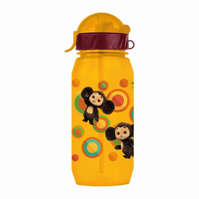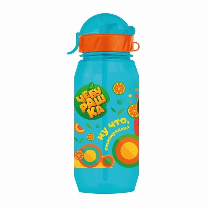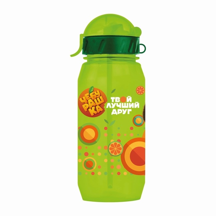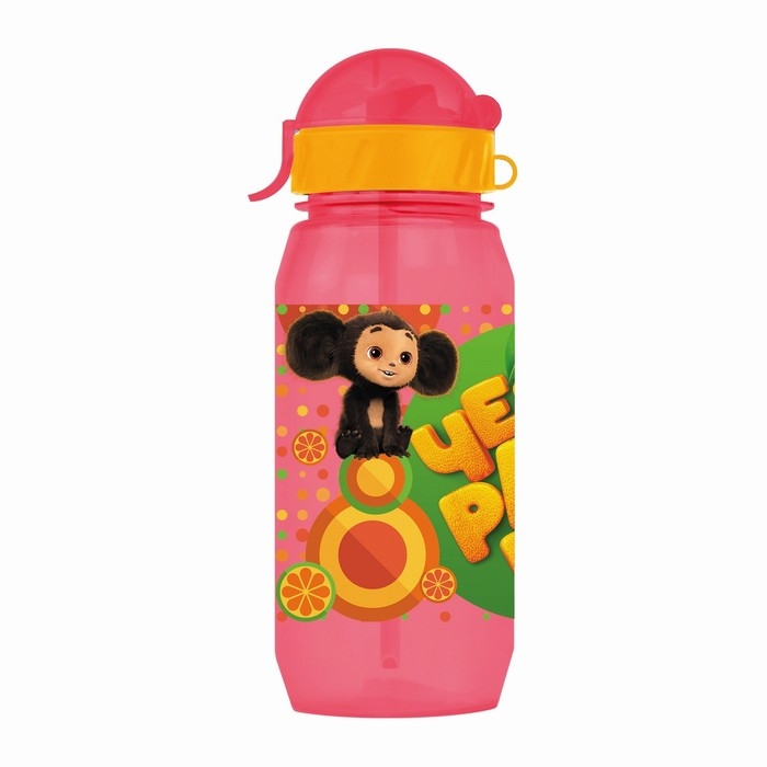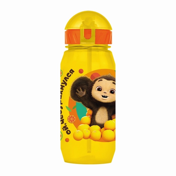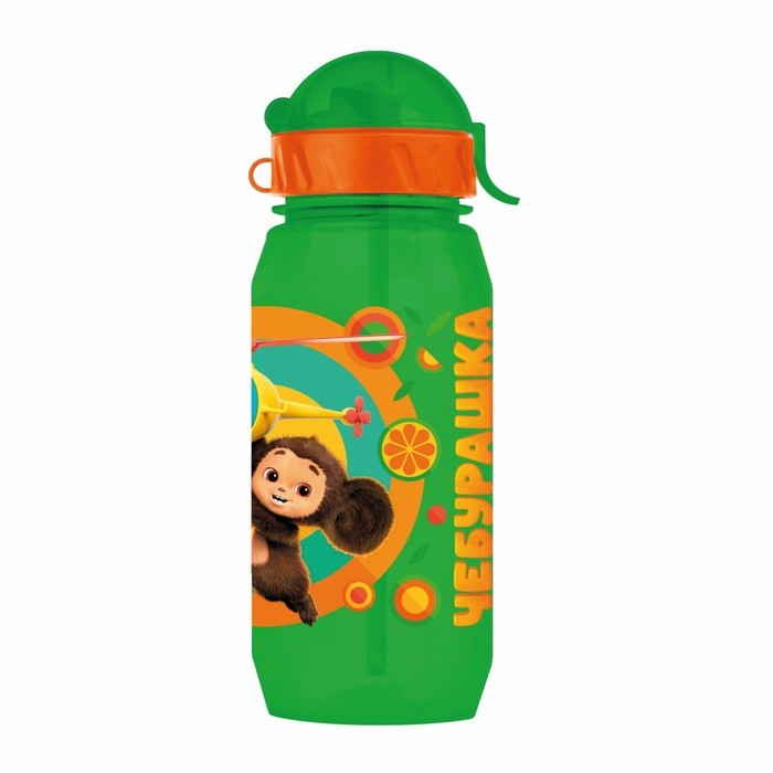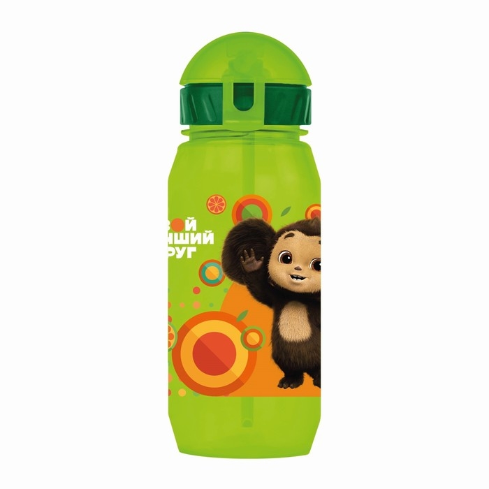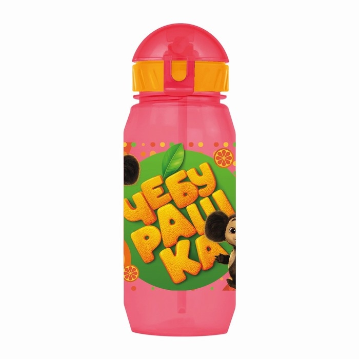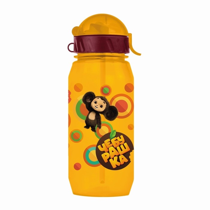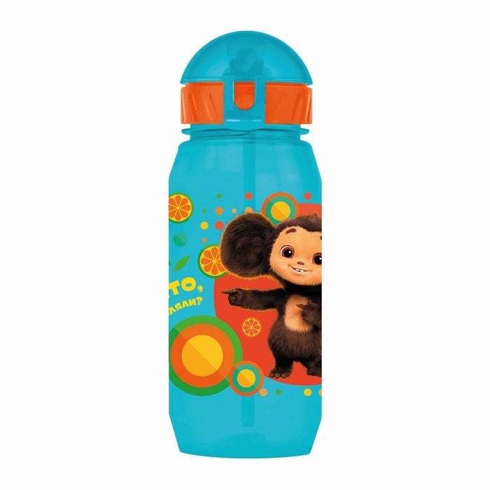 Бутылочка детская с силиконовой трубочкой «Чебурашка», 400 мл., со шнурком, цвет и рисунок МИКС