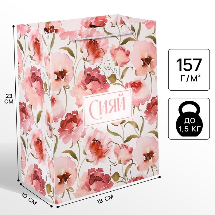 Пакет подарочный "Сияй" 18х23х10 см, упаковка, Принцессы